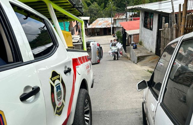 Volcamiento de un carro en el barrio San Diego, de Villamaría. "En compañía de la IPS Fuerza de Rescate valoramos pacientes y el Cuerpo de Bomberos hizo control de peligros".