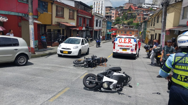 Carrera 20 con calle 51, de Manizales. GER atendió el choque de 2 motocicletas, con igual número de lesionados.