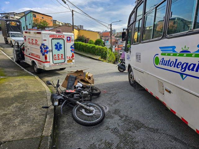 En otro hecho, en la calle 50 con carrera 17, un bus de Autolegal y una motocicleta colisionaron. El motociclista, de 50 años, presentó lesiones en hombro y rodilla izquierda.
