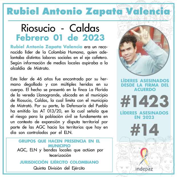 Sucesos Indepaz dice que asesinado en Riosucio (Caldas) era líder social 08 Feb, 2023 /sites/default/files/noticia/2023-02/LIDER.jpg